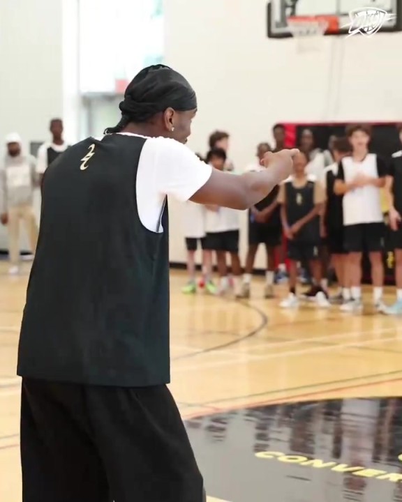 现身训练营!SGA一打二隔扣小球员后激情庆祝!